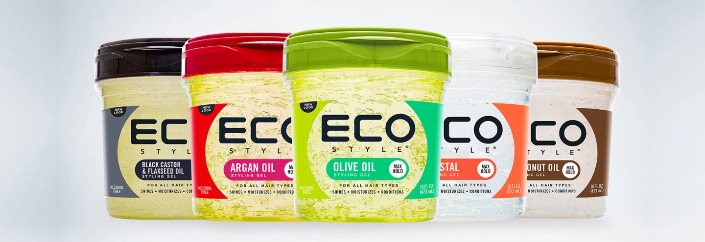 ECO Style Gel is a popular styling gel brand known for its strong hold and nourishing ingredients. It’s widely used for defining curls, laying edges, and creating sleek styles without flaking.